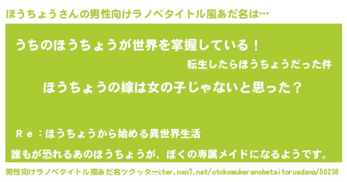 | 女子向けラノベタイトル風あだ名 | 『ほうちょう様がみてる』 |