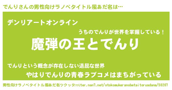 | 意味不明あだ名 | 『住所不定無職でんり(56歳)』 |