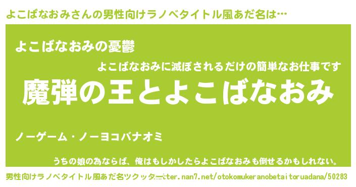 | 女子向けラノベタイトル風あだ名 | 『乙女ゲームの破滅フラグしかない悪役よこばなおみに転生してしまった…』 |