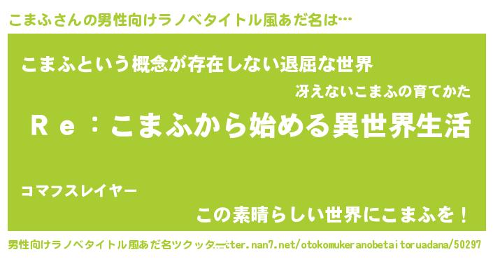 | 意味不明あだ名 | 『自称こまふ』『永久保存こまふ』 |
