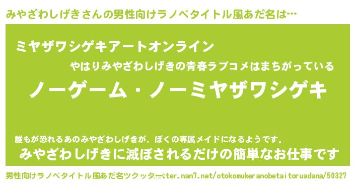| 女子向けラノベタイトル風あだ名 | 『みやざわしげき恋絵巻』 |