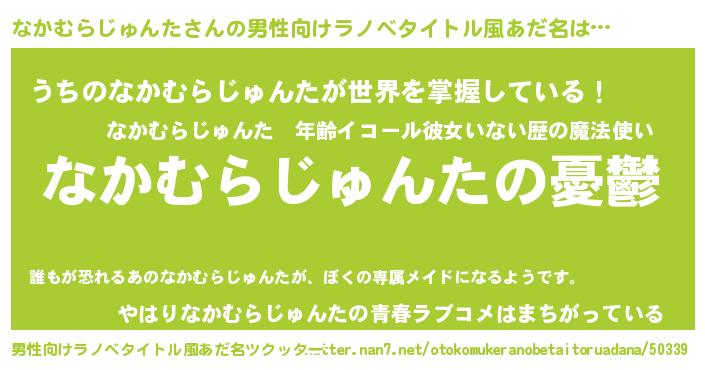 | 女子向けラノベタイトル風あだ名 | 『なかむらじゅんた姫と円卓の騎士』 |