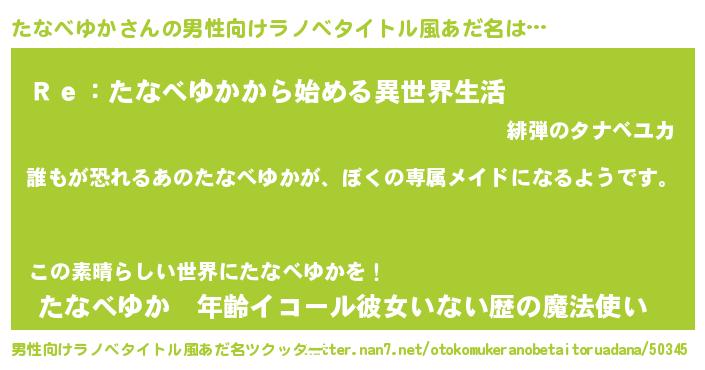 | 意味不明あだ名 | 『永久保存たなべゆか』『自称たなべゆか』 |