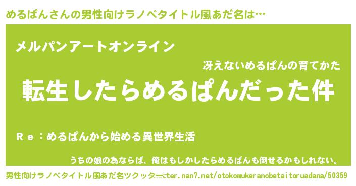 | 胡散臭い通販商品みたいなあだ名 | 『モテモテ間違いなしブレスレット…その名も「めるぱん」』 |