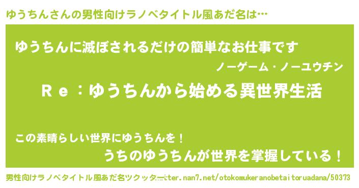| 女子向けラノベタイトル風あだ名 | 『闇のゆうちん』『死神ゆうちんの再婚』 |