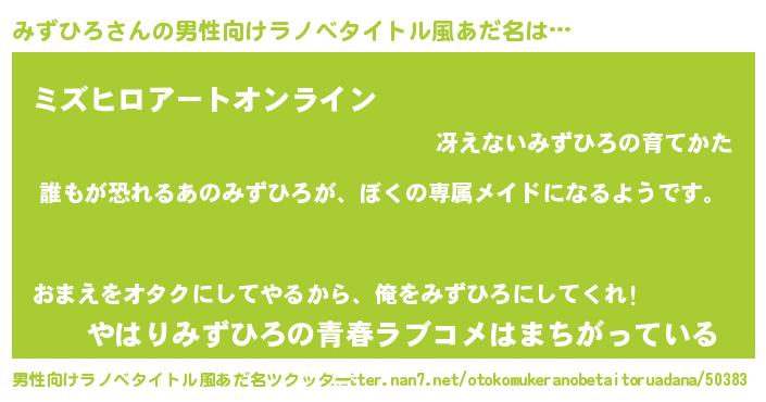 | 胡散臭い通販商品みたいなあだ名 | 『前代未聞の健康食品…その名も「みずひろ」』 |