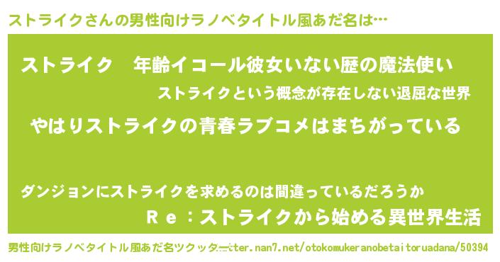 | 女子向けラノベタイトル風あだ名 | 『ストライクの雑貨屋さん』 |