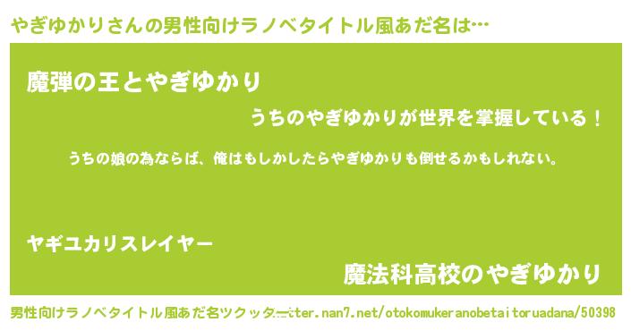 | 女子向けラノベタイトル風あだ名 | 『やぎゆかり伯爵の花嫁』 |