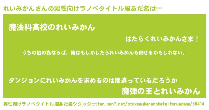 | 女子向けラノベタイトル風あだ名 | 『れいみかんの婚約者』 |