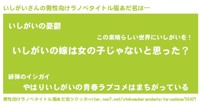 | 胡散臭い通販商品みたいなあだ名 | 『全米が絶賛したサプリメント…その名も「いしがい」』 |
