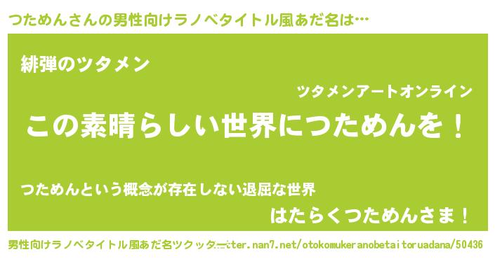 | ヒーロー風カッコイイあだ名 | 『仮面ツタダー』『スーパーツタメン』 |