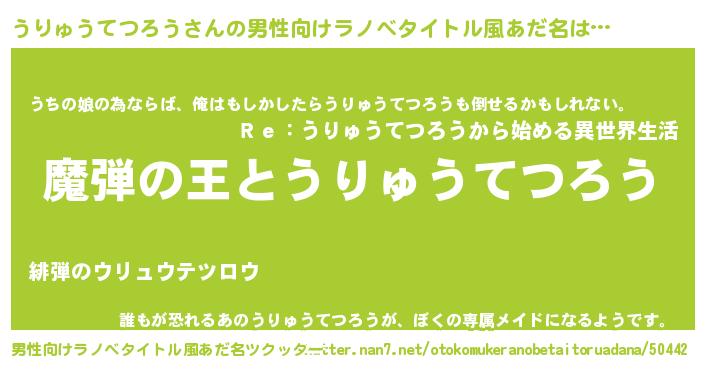 | 意味不明あだ名 | 『住所不定無職うりゅうてつろう(14歳)』 |