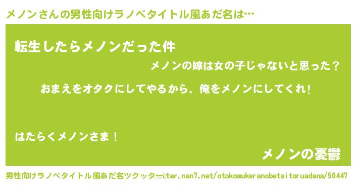 | 女子向けラノベタイトル風あだ名 | 『メノン夫妻のなれそめ』 |