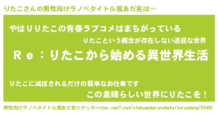 りたこさんの男性向けラノベタイトル風あだ名をツクッター!