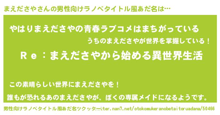 | 意味不明あだ名 | 『自称まえださや』『永久保存まえださや』 |
