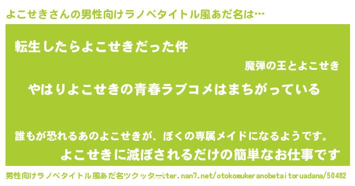 | 女子向けラノベタイトル風あだ名 | 『よこせきの雑貨屋さん』 |