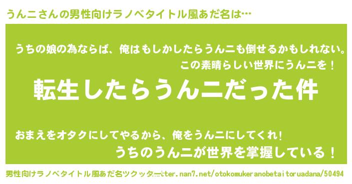 | ヒーロー風カッコイイあだ名 | 『ウルトラうんニマン』『仮面ウンダー』 |