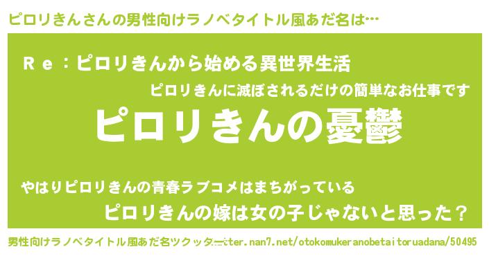 | 女子向けラノベタイトル風あだ名 | 『ピロリきん姫と円卓の騎士』 |