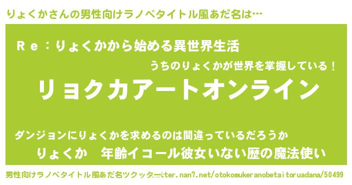 | ヒーロー風カッコイイあだ名 | 『スーパーリョクカ』『究極戦士リョクカ』 |