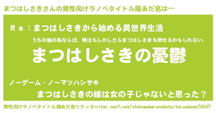 | ファンタジー風あだ名 | 『マツフェル』『ゼマツトゥ』 |