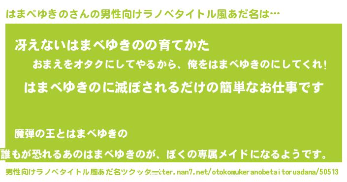 | 女子向けラノベタイトル風あだ名 | 『横柄はまべゆきのと宰相陛下』 |