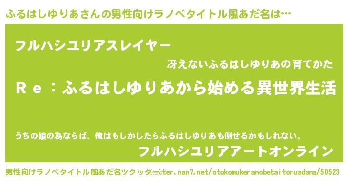 | 伝説のあだ名 | 『封印されし竜騎士ふるはしゆりあ』 |