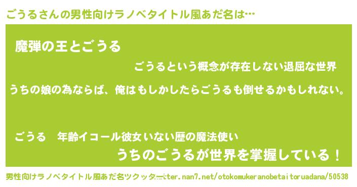 | 女子向けラノベタイトル風あだ名 | 『ごうるの婚約者』『ごうるの契約王妃』 |