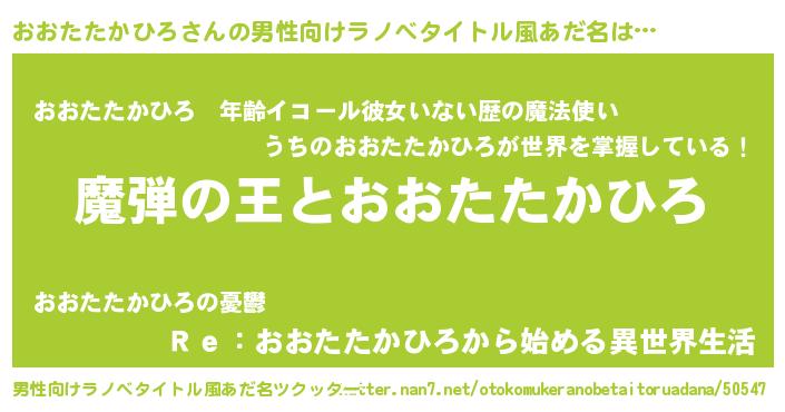 | 女子向けラノベタイトル風あだ名 | 『乙女ゲームの破滅フラグしかない悪役おおたたかひろに転生してしまった…』 |