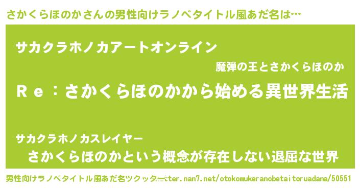 | 意味不明あだ名 | 『自称さかくらほのか』 |