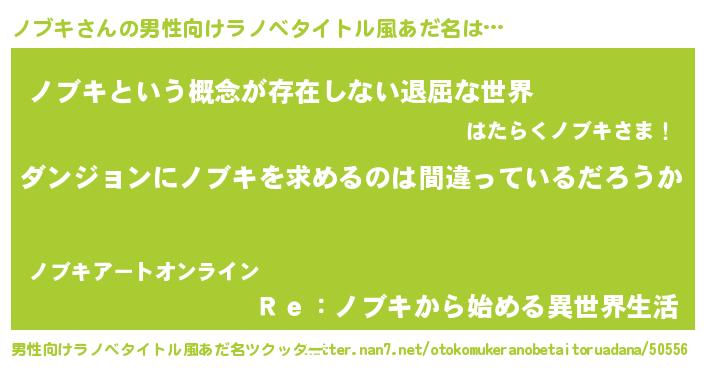 | 女子向けラノベタイトル風あだ名 | 『ノブキは平凡を望む』 |
