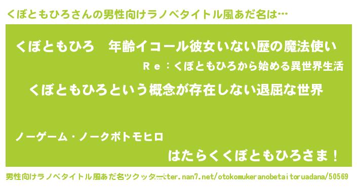 | 女子向けラノベタイトル風あだ名 | 『くぼともひろの契約王妃』 |