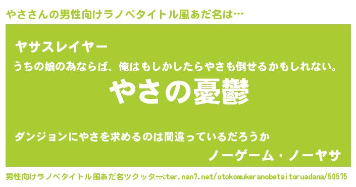 | 女子向けラノベタイトル風あだ名 | 『(仮)やさのやんごとなき事情』 |