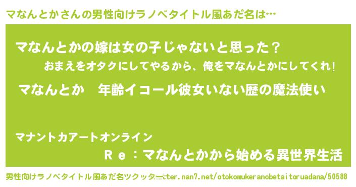 | 女子向けラノベタイトル風あだ名 | 『マなんとかの玉の輿計画!』 |