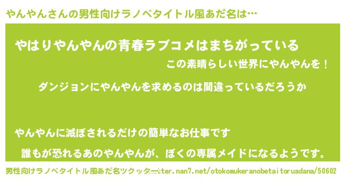 | 女子向けラノベタイトル風あだ名 | 『やんやんは平凡を望む』 |