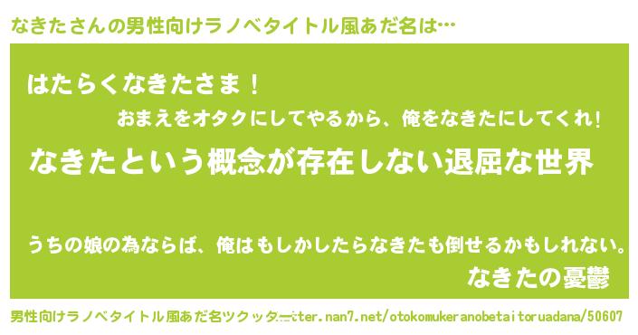 | 女子向けラノベタイトル風あだ名 | 『なきたの契約王妃』『なきた恋絵巻』 |