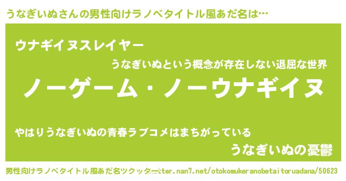 | ヘコむあだ名 | 『うなもー』『うなぎいぬ(遠い目)』 |