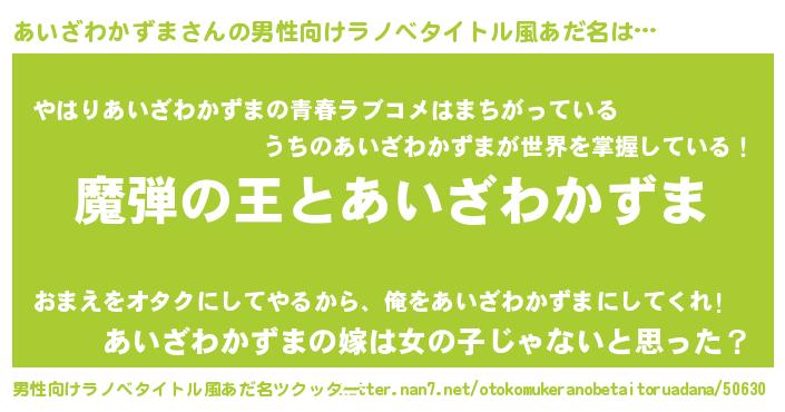 | 女子向けラノベタイトル風あだ名 | 『あいざわかずまが死なない童話 林檎のあいざわかずまの診療簿』 |