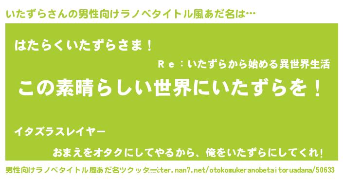 | ヒーロー風カッコイイあだ名 | 『仮面イタダー』『正義の使者いたずら』 |