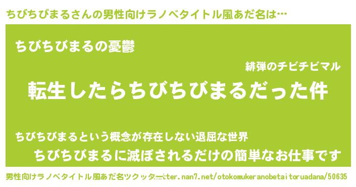 | 女子向けラノベタイトル風あだ名 | 『ちびちびまるの玉の輿計画!』 |