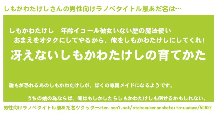 | 女子向けラノベタイトル風あだ名 | 『シンデレラしもかわたけし家の靴箱館』 |