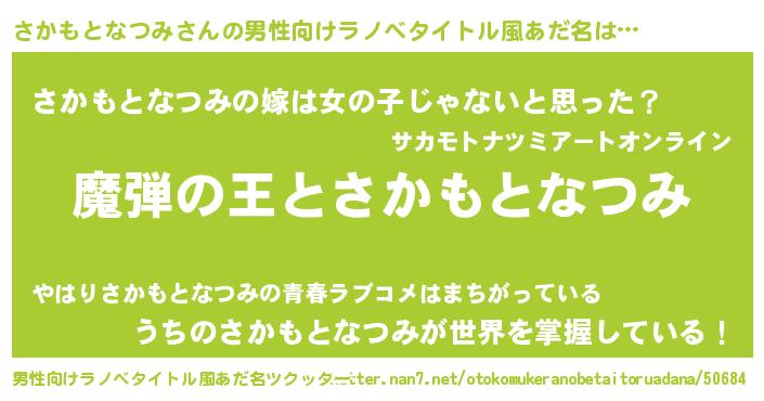 意味不明あだ名 | 『住所不定無職さかもとなつみ(84歳)』 |