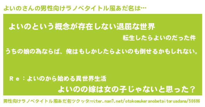 | 女子向けラノベタイトル風あだ名 | 『よいのの婚約者』『よいの様がみてる』 |