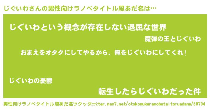 | 女子向けラノベタイトル風あだ名 | 『じぐいわ夫妻のなれそめ』 |