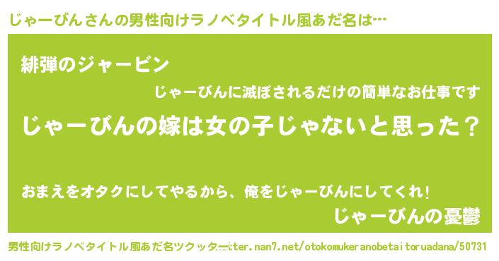 | 女子向けラノベタイトル風あだ名 | 『じゃーびん様がみてる』 |