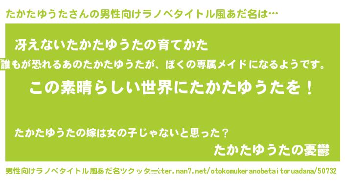 | 女子向けラノベタイトル風あだ名 | 『悪役たかたゆうたに転生したようですが、知った事ではありません』 |