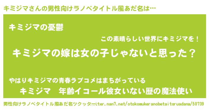 | 胡散臭い通販商品みたいなあだ名 | 『全米が絶賛したサプリメント…その名も「キミジマ」』 |
