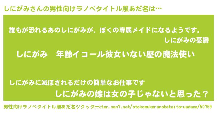 | 女子向けラノベタイトル風あだ名 | 『しにがみの玉の輿計画!』 |