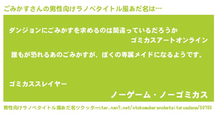 | 女子向けラノベタイトル風あだ名 | 『異世界でカフェごみかすを開店しました。』 |
