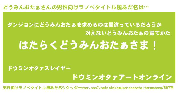 | 胡散臭い通販商品みたいなあだ名 | 『信頼と実績のペンダント…その名も「どうみんおたぁ」』 |