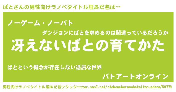 | ヒーロー風カッコイイあだ名 | 『慈愛の使者ばと』『スーパーバト』 |